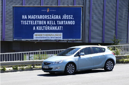 Figure 2. National consultation billboard: ‘If you come to Hungary, you have to respect our culture’